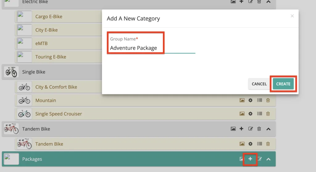 2. Click on the ‘+’ icon on the packages(green colour) and enter the Package name (parent category) and click on ‘Create’ button.