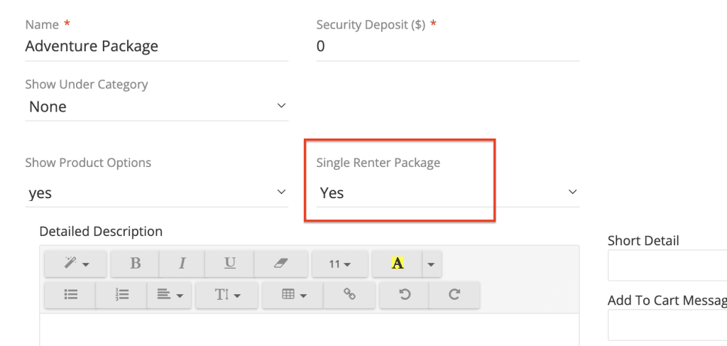 When there are multiple items inside a package, you need to decide whether the package should be configured for a single renter (all items rented by one person) or for multiple renters (items within the package can be assigned to different people under the same order).