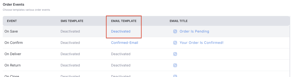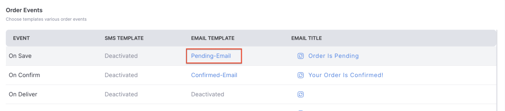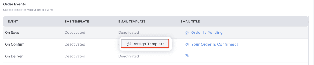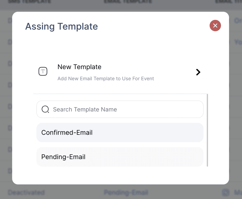 4. Choose the desired template, and it will be automatically assigned to the event.