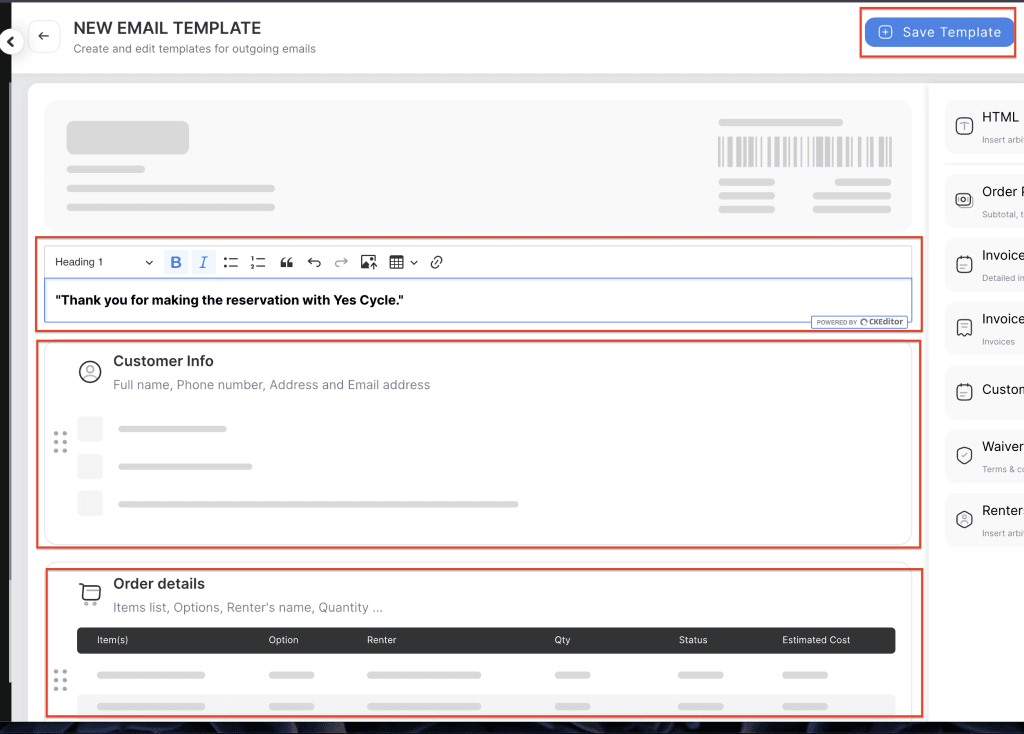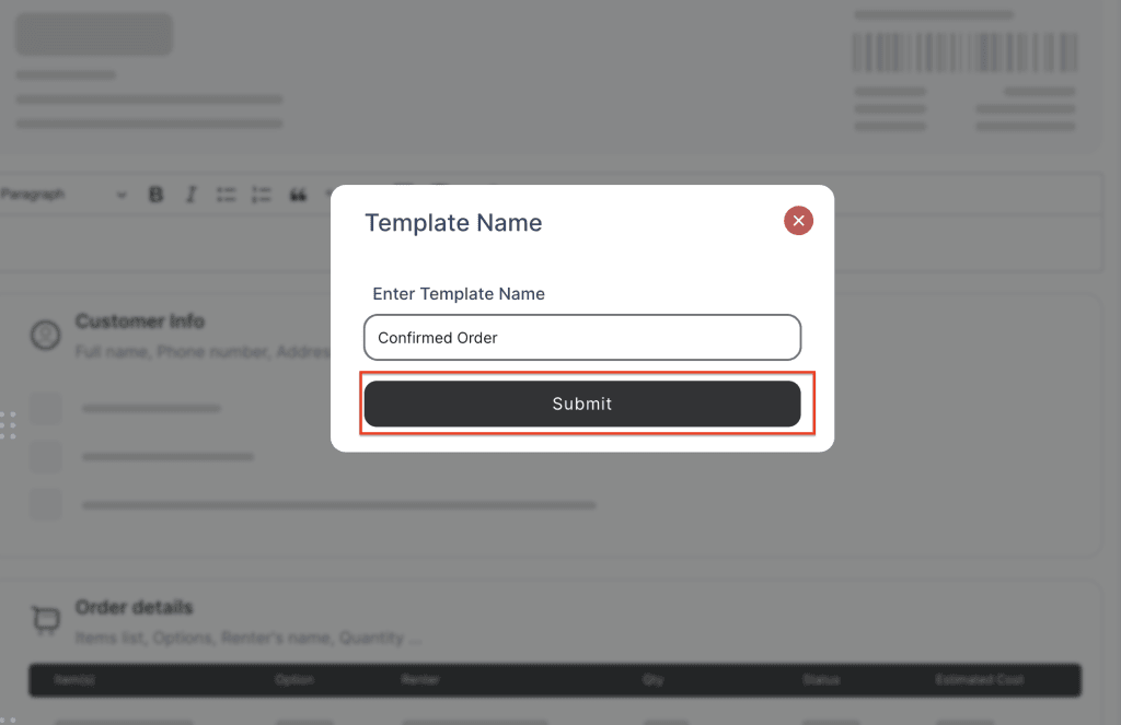 6. Once you’ve customized the template as needed, click Save Template and enter the template name.