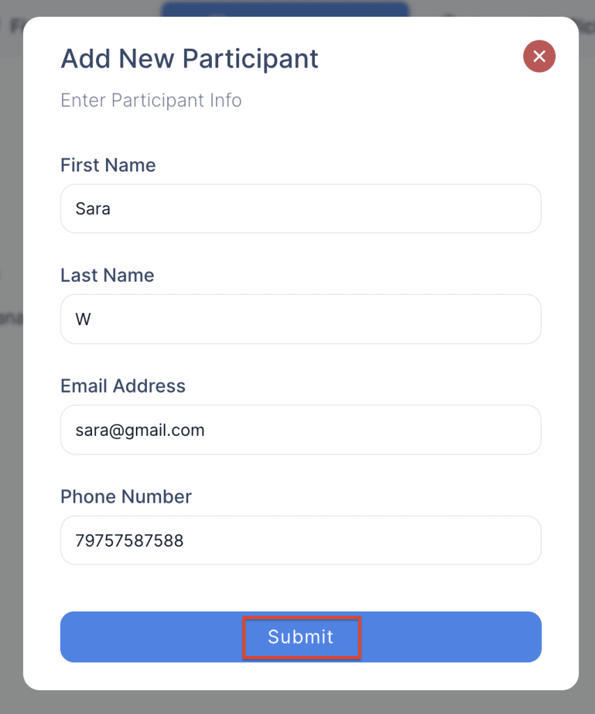 6. Click Submit to add the participant.