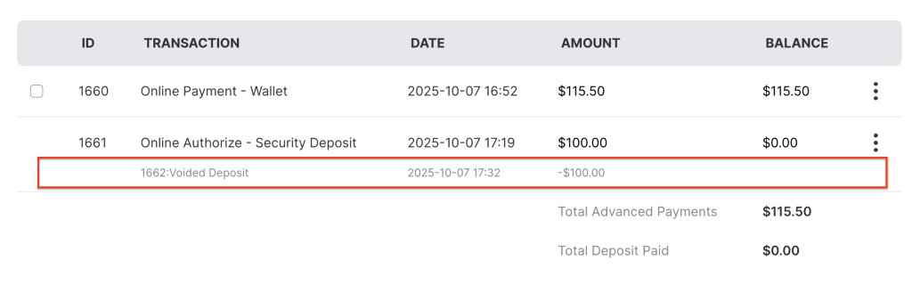 6.A new line will be added to the list indicating that the deposit has been voided.