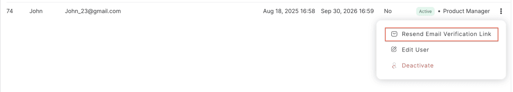 A setup password link will be sent to this email, allowing the user to create their own password. If some reasons, the user didnt receive the email use the 3 dot menu and send “Resend Email Verification Link”